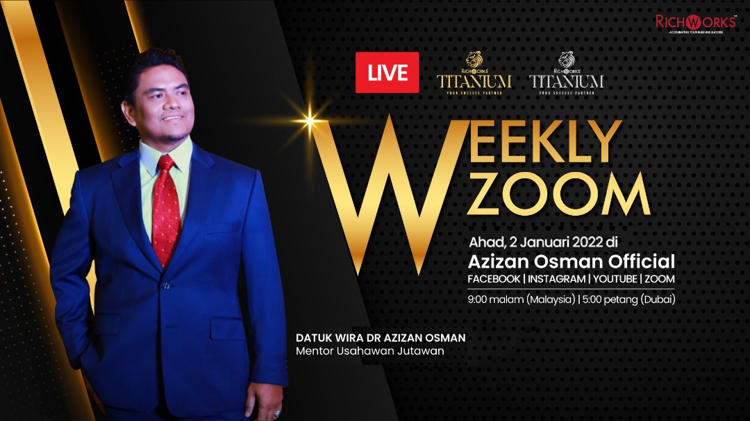 Hadir ke Sesi Weekly Zoom bersama Datuk Wira Dr Azizan Osman 9:00 malam ini, AHAD 2 Januari 2022 secara Percuma.