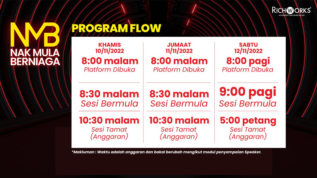 Assalamualaikum dan Salam Sejahtera alluser, Anda sudah terlepas sesi pertama pada malam tadi! Tuan Radz Mohd. menerangkan bagaimana usahawan itu sebenarnya mampu menjana jualan meskipun ketika dalam tempoh mencabar ini. Faham, banyak bisnes di luar sana terkesan dengan keadaan semasa namun adakah alluser tak berpeluang untuk pastikan bisnes bukan saja survive malah grow lagi? Sebab itu, RichWorks bawakan program Nak Mula Berniaga (NMB) yang akan bermula jam 8.30 malam ini! Melalui ilmu dan panduan yang betul, apapun dugaan melanda pasti lebih mudah dihadapi. | |