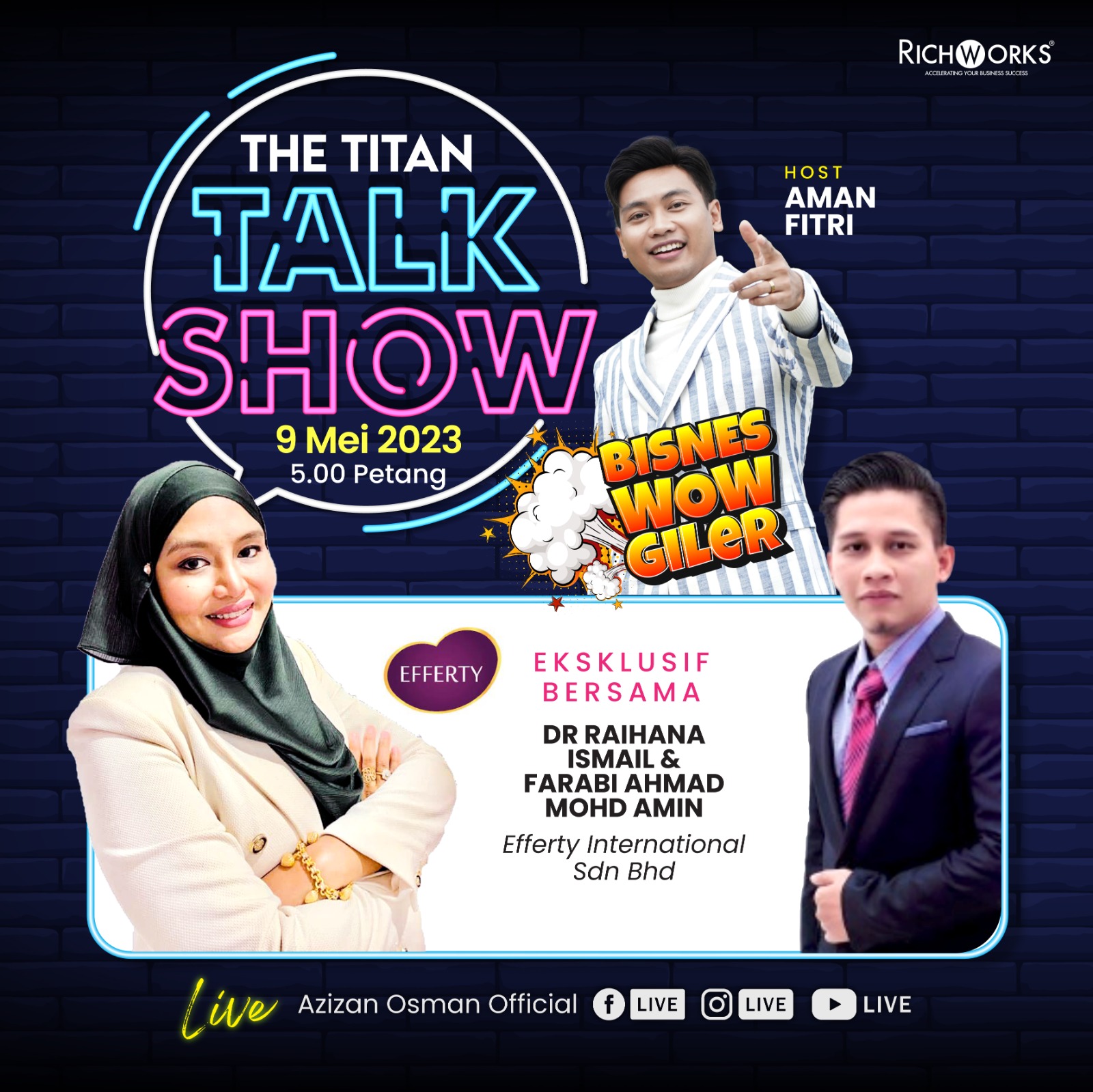 Tonton Titan Talk Show pada hari ini jam 5 petang di Facebook, Instagram dan YouTube Azizan Osman Official.