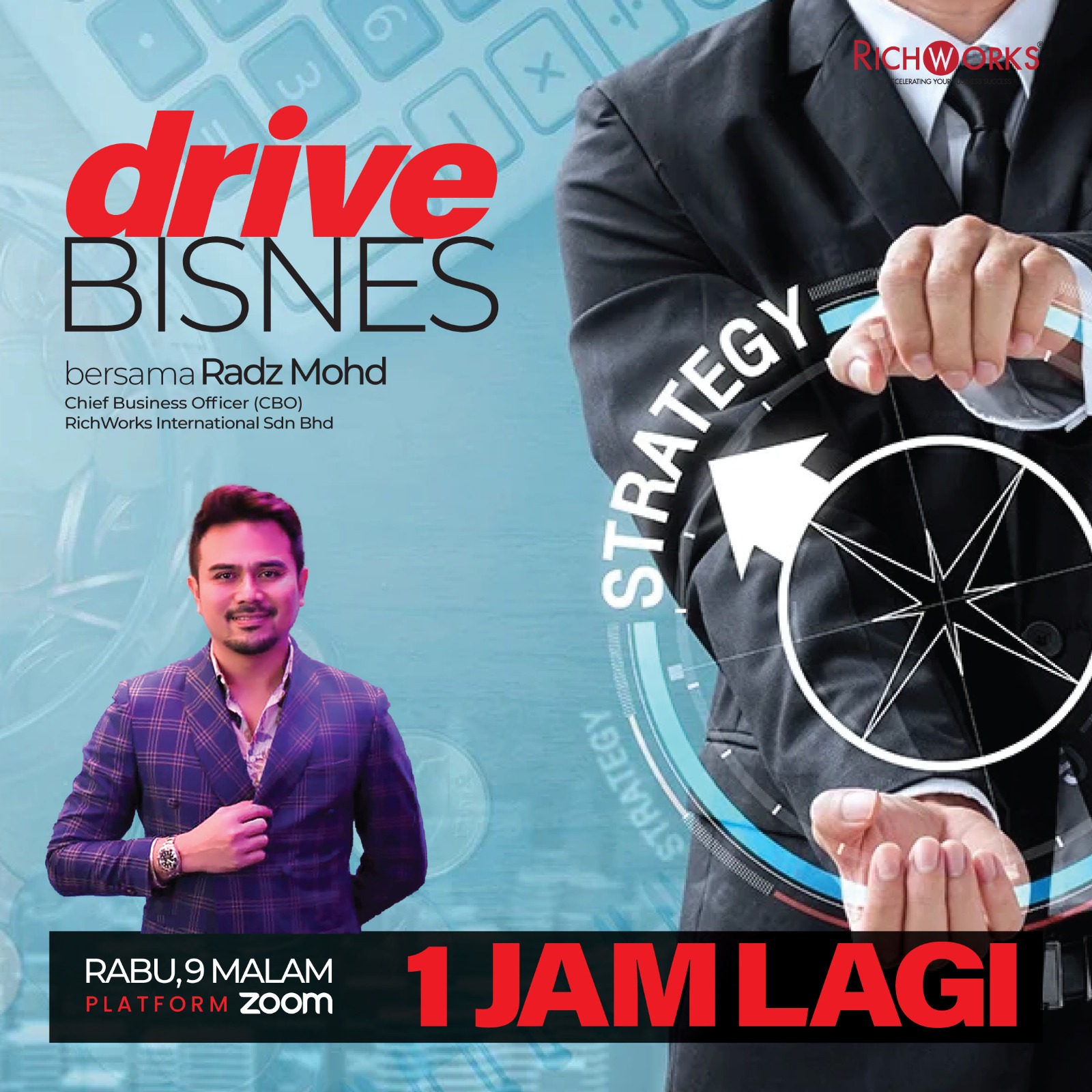 Tuan Radz Mohd, Chief Business Officer (CBO) RichWorks akan bersama anda menerusi platform ZOOM.