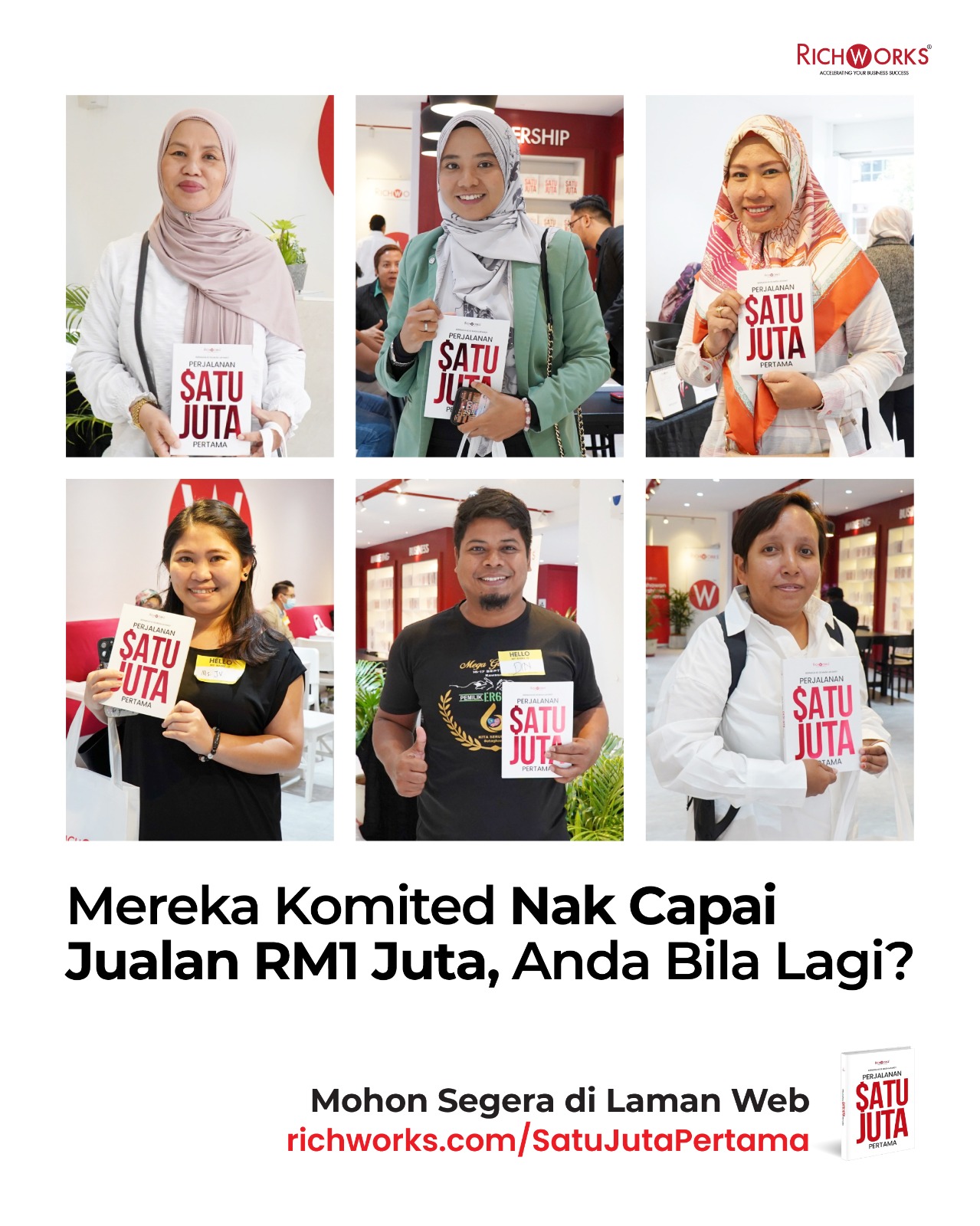 Cuma nak ingatkan, esok kami masih ada slot untuk anda dapatkan buku Perjalanan Satu Juta Pertama + sesi Penilaian Perniagaan berharga RM497 dengan hadir ke pejabat RichWorks di Shah Alam.