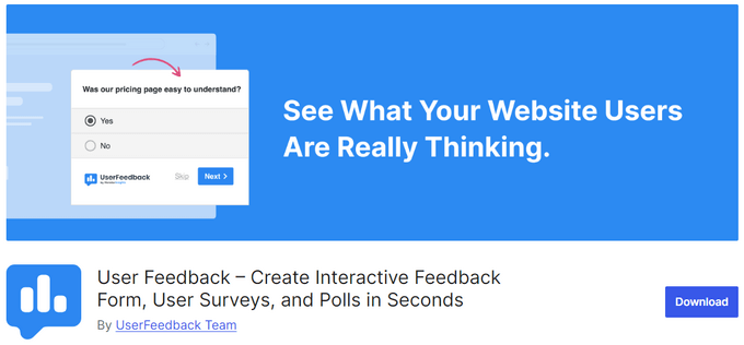 Download the free UserFeedback plugin and start using your visitors' feedback to make your website the best it can be!