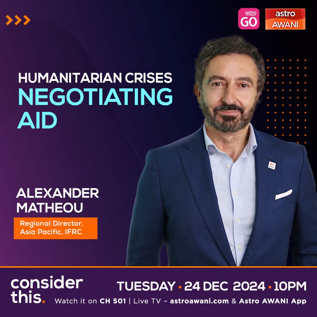 Dapatkan berita terkini di sini | | | | | 2024 has been a year of unrelenting humanitarian crises—conflict and violence inflicted on so many, the climate crisis displacing millions, and all of it, ultimately, caused by human actions. But amidst the chaos, there's still hope. On this episode of #ConsiderThis Melisa Idris speaks with Alexander Matheou, Regional Director of the International Federation of Red Cross and Red Crescent Societies (IFRC) for Asia Pacific. We explore the work of the IFRC in Afghanistan and Myanmar, and the lessons humanitarian diplomacy has taught us that hope isn't passive but built through action, advocacy, and collaboration. | | | | | |