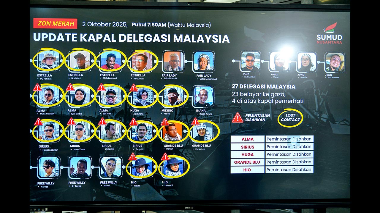 GSF: Israel adakan perbicaraan pengusiran aktivis flotila bantuan ke Gaza - Pusat undang-undang; Global Sumud Flotilla: Peserta dinafikan akses peguam - ADALAH; Beberapa laluan di ibu negara ditutup sempena KLSCM, LTdL pada 4 dan 5 Okt