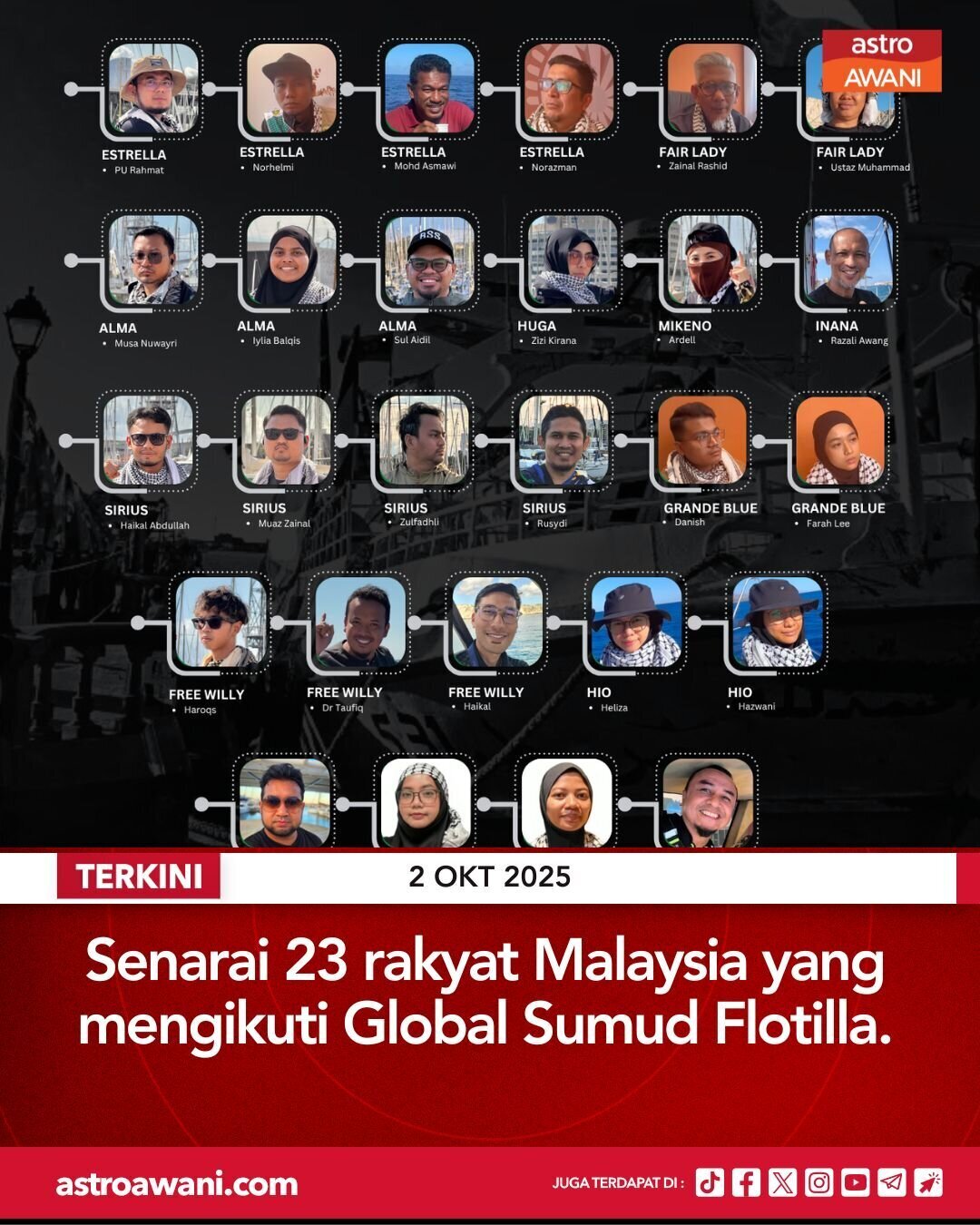 Berita Terkini Global Sumud Flotilla ke Gaza 11PM | 1 Oktober 2025